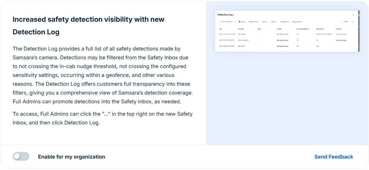 New Samsara Features: Detection Log for Safety Event Transparency